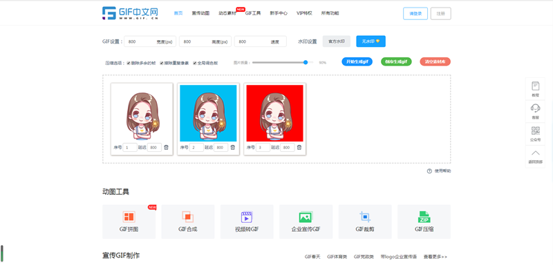 很多电商老板在做宣传活动时都会使用gif图片,相比静态图片,gif图片展示效果好,更加吸引人的眼球。但是有不少小伙伴表示动图GIF制作会不会很复杂呢?这时,大家可以使用在线gif制作(https://www.gif.cn/)工具,只需几个简单的操作步骤就可以轻松完成动态图片制作,接下来带大家了解一下图片合成GIF的方法。 1、打开GIF中文网网站,点击“GIF合成”功能,上传图片。如果想要从多张图片中选择几张图片合成的话,可以按照键盘“ctrl”键+鼠标左键来进行点选。 2、图片上传之后,设置生成gif的参数,比如宽高尺寸,速度(图片切换的速度),图片质量。默认压缩选项全部开启,可生成更小的图片文件,如要求图片清晰度更高,可以勾掉压缩选项,点击“开始生成gif”或者“倒序生成gif”按钮。 3、在弹窗中查看预览效果,点击“下载图片”,即可快速完成gif在线制作。 按照小编介绍的gif图片合成制作方法就可以轻松制作gif动图了。而且,GIF中文网还支持GIF压缩,GIF裁剪,视频转gif等功能,是一款专业的在线制作GIF动画工具,还没有收藏的小伙伴快快点关注收藏吧!